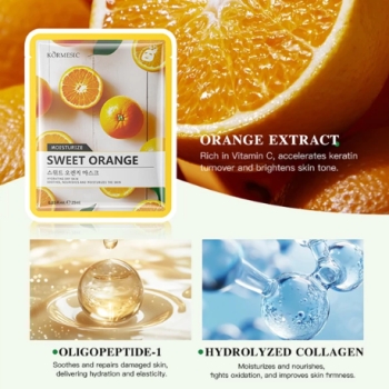 Rasakan kesegaran alami jeruk manis dalam rutinitas perawatan kulit Anda dengan kormesic sheet mask. Produk ini diformulasikan oleh PT. Sing Foo Cosmetic (Kormesic) untuk memberikan hidrasi mendalam, menutrisi, dan mengembalikan kilau sehat kulit wajah yang kusam dan lelah.