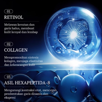 Mengencangkan dan Meremajakan Kulit – Retinol bekerja mempercepat regenerasi sel, sedangkan kolagen membantu menjaga struktur kulit agar tetap elastis.