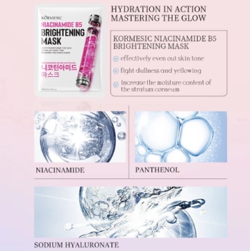 Minimal Pembelian: 1Perawatan Kulit KORMESIC Niacinamide B5 Brightening Mask adalah masker wajah yang diformulasikan khusus untuk mencerahkan kulit, mengurangi noda gelap, serta menjaga kelembapan dan kesehatan kulit. Cocok digunakan sebagai bagian dari rangkaian perawatan mingguan.